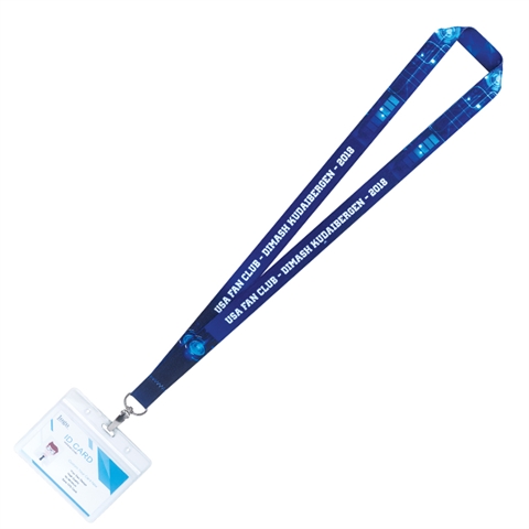 Full color lanyards, also called heat transferred lanyards, both sides printed with full color logo and background.