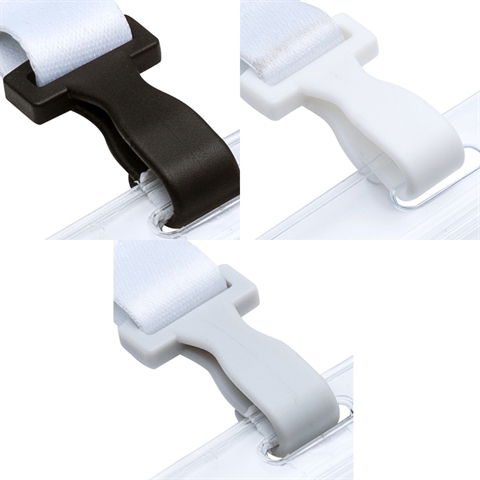 It fits for all kinds of our badge holders. 5 colors available: black, white, gray, blue, red. For premade lanyards, the hook can only be the same color as the picture shows. For customized lanyards, if no instructions, it will also be in the same color as the first picture shows (If you want it to be other color, please leave message in special instructions).